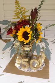 50 year wedding anniversary flowers. Set the table with a paper gold tablecloth rent china and crystal with gold trim use gold looking votive candles place flowers in gold colored vases. Roses lilies carnations hydrangeas daisies. Traditional flowers plants for a 50th wedding anniversary violets.