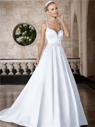 As one of our favorite simple satin wedding dresses this gorgeous elra mikado gown gives us classy heavenly and oh so modern vibes with a plunging jewel neckline low square back and stunning attached pleated train. 2 colors added to your favorites. Brides can easily find satin ball gowns a lines mermaid dresses and more.
