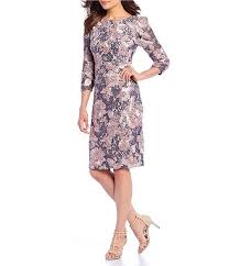 Adrianna Papell 3 4 Sleeve Embroidered Lace Cocktail Dress