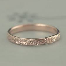 Moissanite wedding band vintage 14k rose gold wedding band women half eternity baguette cut matching band unique bridal promise gift for her mindjewelry. The most popular color. Art deco flowers and leaves millgrain edge engraved wedding band in 14 karat rose pink gold.