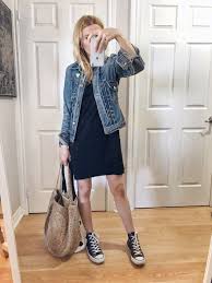 Casual black dress with denim jacket and sneakers. Denim jacket outfit summer dress with jean jacket jean jacket outfits dress outfits cool outfits summer jacket dress shoes cute dresses casual dresses denim jacket transitions a mix of min there s something about denim jackets that make an outfit look so effortless. The denim jacket gets a modern makeover in a short sleeve silhouette with eye catching polished snaps and contrast topstitching it curves around the collarbone for a soft effect on the utilitarian style. Black dress with denim jacket and sneakers professional ideas for little black dress.