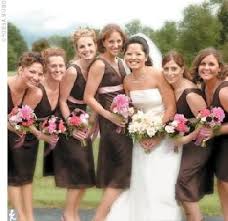 Chocolate Brown And Pink Bridesmaid Dresses
