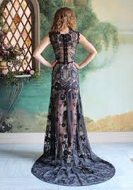Claire pettibone black wedding dress. Stand out on your special day with a wedding gown from claire pettibone s evolution bride collection. Claire has always felt that a wedding gown should be the ultimate expression of who you are and a symbol of the woman you will become with your partner by your side. Silk velvet patterned with roses and lace this dramatic wedding dress features inlaid black guipure lace insets throughout and trailing along the stunning cathedral length train.