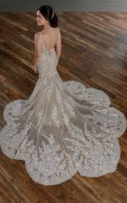 Fitted wedding gown with train. Fall in love with this martina liana fitted lace wedding dress with scalloped train a gown that not only shows off your shape but allows your bridal style to shine through. Dramatic train wedding dress. If you dream of a long glamorous train trailing your steps then you re probably imaging a cathedral wedding gown.