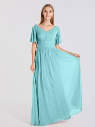 With a flattering crisscross waistband and flowing flutter sleeves this v neck mesh bridesmaid dress is a party pleasing pick. Fully lined hand wash imported all sample sales are final. Shop today for the perfect wedding dresses and gowns.