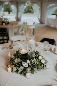 A simple and cool greenery wedding centerpiece is also a good idea it won t save table space but still is cool paired with candles a popular idea is greenery arrangements or single branches in small vases or glasses on a tray or wood slice plus candles and photos looks very intimate and very inspiring. Apr 6 2017 amy fanton photography. A bold greenery wedding centerpiece in a silver vase is a chic and organic idea to rock.