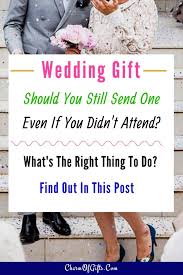 Many feel that it s up to the guest to decide whether or not to send a gift when they re not attending the celebration. Well how much money you should give at a wedding depends on your relationship and your attending status. Traditional wedding etiquette states that if you can t attend the wedding you are not obligated to send a wedding gift.