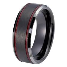Crownal 8mm red black tungsten wedding bands rings men women red groove matte finish size 6 to 16. Men s wedding bands. The interior of men s black wedding rings are made of a strong durable tungsten carbide which is 10 times harder than gold and retains its shape over the years.