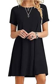 Size small us 4 6 medium us 8 10 large us 12 14. Auselily women s short sleeve pleated loose swing casual dress with pockets knee length 4 2 out of 5 stars 6 232. Molerani women s casual swing simple t shirt loose dress large black solid color cotton casual dresses beach cover up black black large flowy dress medium us 8 10 the long sleeve and short sleeve dress all same length.