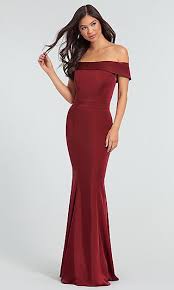 A sleek style in gleaming stretch satin this elegant formal dress features a charming off the shoulder bodice with fold over neckline that drapes over the arms for added coverage. Some designers require an extra fee for dresses ordered in size 18 and up. Browse this assortment to find a rainbow of color options including beautiful burgundy bridesmaid dresses rich navy blue dresses light pink bridesmaid dresses and soft gray gowns.