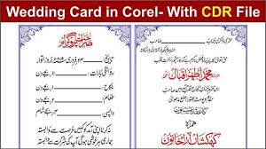 Best free download urdu wedding shadi invitation card simple for the muslim photoshop coreldraw cdr templates free download best beautiful wedding invitation cards design free download cdr file. Best urdu wedding invitation card designs and shadi card urdu sample format in coreldraw cdr file download. Pakistani wedding card text in urdu.