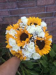 Wedding bouquet set yellow sunflower white daisy baby s breath country western flower bouquet barn bride sunflower cascade bouquet. 5 out of 5 stars 1 088 1 088 reviews 0. Bridal bouquet with sunflowers and roses bridesmaid bouquet sunflower centerpiece yellow and burgundy bouquet.
