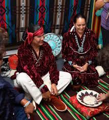 One aspect of navajo culture reflected in clothing is the navajo wedding dress. The ceremony is conducted by a respected elder of the bride or by a medicine person. Photographs are not permitted and the ceremony is solely witnessed by close friends and family says robin martinez a full blooded navajo from parker az who still practices some traditional navajo customs.