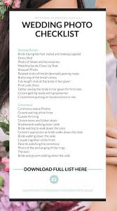 There are lots of advantages to creating a wedding gift list including the fact that it saves guests the stress of deciding what to buy you. Must take wedding photo checklist a week or so before the ceremony supply the photographer with a list of moments that are important to you. Close ups of the bride s accessories think the veil garter shoes or jewellery the wedding dress hanging up on a decorative hanger or draped.