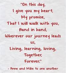 With this ring i give you my promise. One way to calm the nerves is to remember that you are marrying your best friend and partner for life. I will give you all my love and you shall not walk alone.