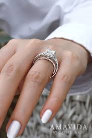 The engagement ring is traditionally the flashier ring with a round princess or cushion cut gem in the center. Skip to content skip to navigation get the latest updates on shipping store re openings and contact free concierge service or book an online or in store appointment. Pear shaped diamond double frame vintage style engagement ring in 14k rose gold.