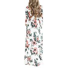 Yming women s casual short sleeve floral print maxi dress with pockets 4 0 out of 5 stars 10. Limsea women cold shoulder floral print elegant maxi casual long dresses loose plain with pockets. It has a fitted body and three quarter length sleeves.
