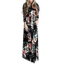 Women S Casual Floral Printed Long Maxi Dress With Pockets